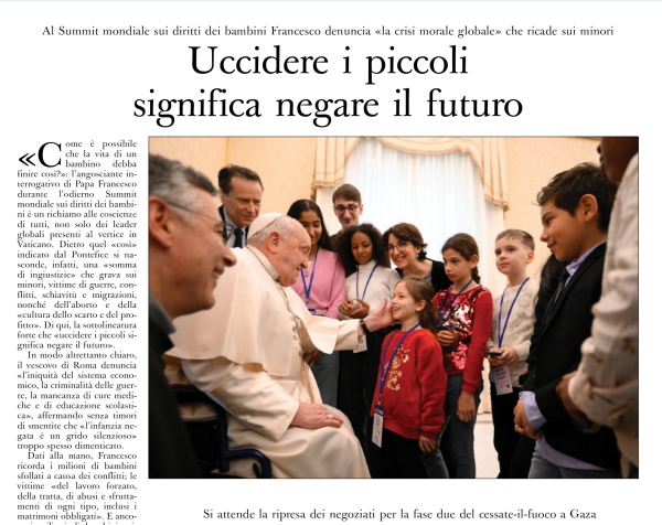 Sole 24Ore: il primo piano dedicato al Summit sui diritti dei bambini
