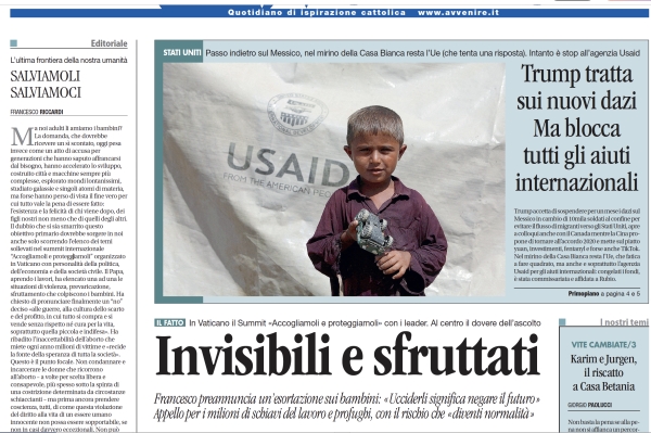Avvenire: "Invisibili e sfruttati", Papa Francesco preannuncia un'esortazione sui bambini