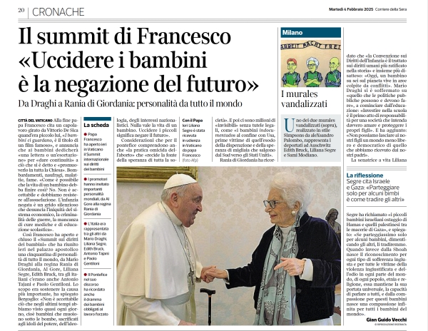 Corriere della Sera. Benigni ai centomila bambini della GMB: "Fermate voi la guerra"