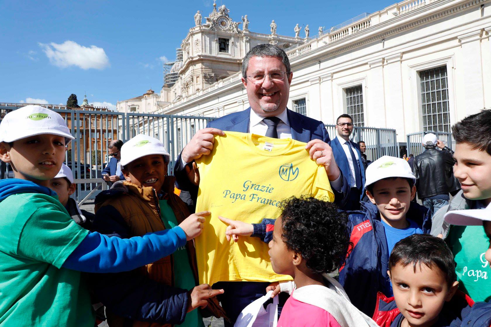 Immensa la gioia dei bambini migranti che, mercoledì 14 marzo 2018, sono stati chiamati da Papa Francesco sulla sua jeep bianca per un sorprendente giro tra la folla durante l'udienza generale. I bambini fanno parte del gruppo di rifugiati portati in salvo con il primo corridoio umanitario organizzato dalla CEI e dal Governo Italiano il 22 dicembre 2017. Una volta atterrati a Roma sono stati accolti, insieme ai loro genitori, dalla Cooperativa Auxilium a Mondo Migliore. Per esprimere gratitudine al Papa, tutto il gruppo dei rifugiati ha partecipato all'udienza generale del mercoledì e ha avuto occasione di poterlo salutare. Il gruppo era formato da 30 bambini - di nazionalità siriana, somala ed eritrea - insieme ai genitori, agli operatori Auxilium, al direttore del Centro Mondo Migliore Domenico Alagia e al fondatore della Cooperativa Auxilium Angelo Chiorazzo. Durante l'incontro, i piccoli rifugiati hanno donato a Papa Francesco tante letterine e disegni preparati da loro. Il Papa ha scherzato, abbracciato e baciato i bambini e, a ognuno, ha detto “ti voglio bene” con una tenerezza commovente. Papa Francesco ha anche autografato una delle t-shirt colorate indossate dai bambini sulle quali c’è scritto: “Non sono pericoloso, sono in pericolo”. Inoltre, uno dei ragazzi di nazionalità eritrea gli ha donato una statuina della Madonna in gesso realizzata da lui, che Papa Francesco ha molto apprezzato, tanto da chiedere che fosse portata nella sua stanza. Angelo Chiorazzo al termine dell’udienza ha detto: “Non ci sono parole per descrivere l’entusiasmo di questa mattina. Penso al dramma vissuto prima in Siria, poi nei lager libici da queste persone e poi penso alla gioia di oggi, allo stupore dei bambini in giro per Piazza San Pietro sulla jeep del Papa: è stato meraviglioso. Voglio ringraziare ancora una volta Papa Francesco per la sua attenzione al dramma epocale dei rifugiati e la sua determinazione si è sentita anche sui corridoi umanitari. Sono l’unico mezzo legale e sicuro per mettere in salvo chi fugge dalla guerra e dalla miseria”.