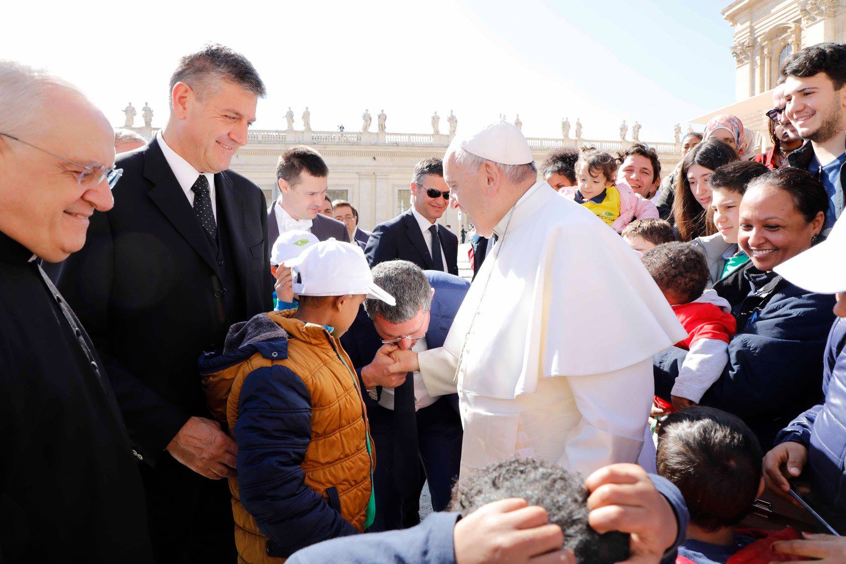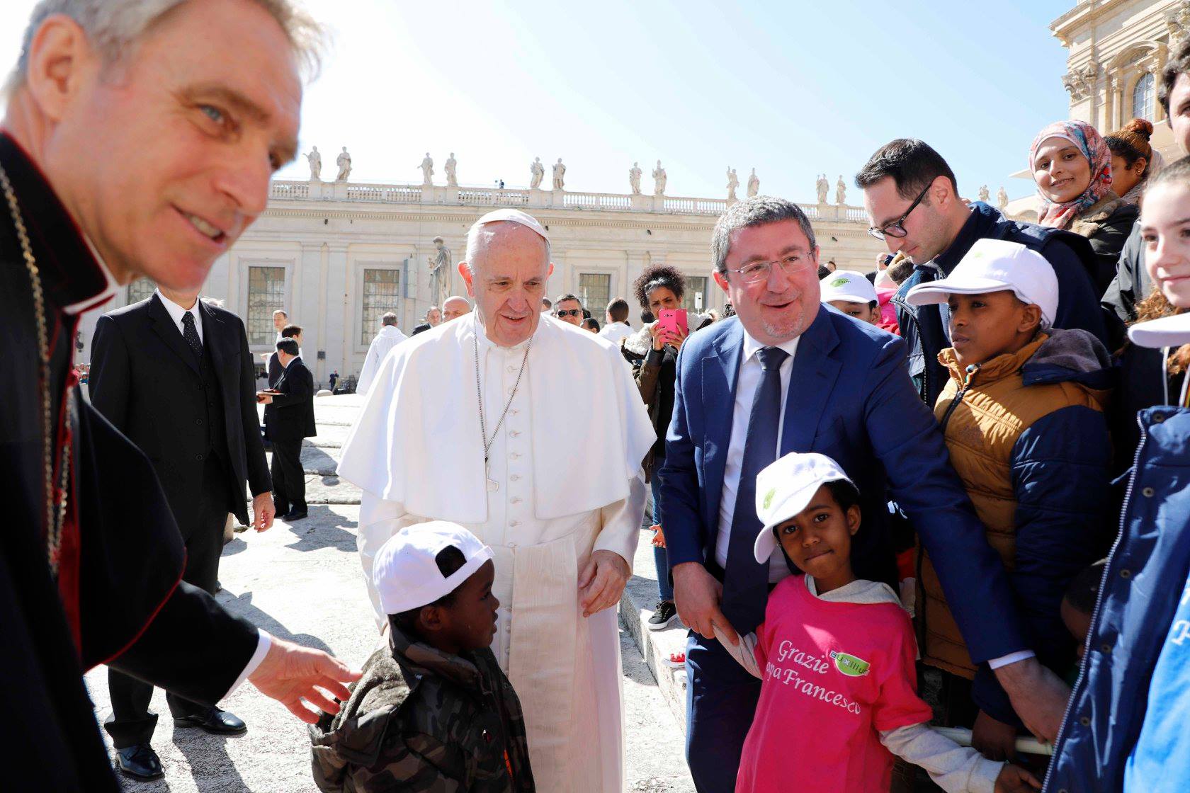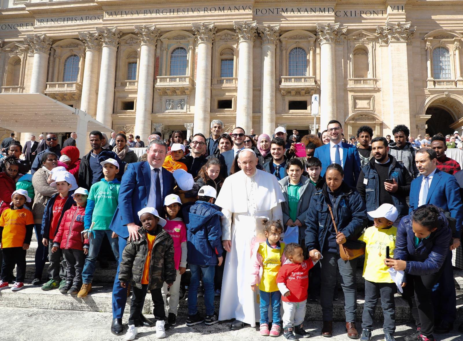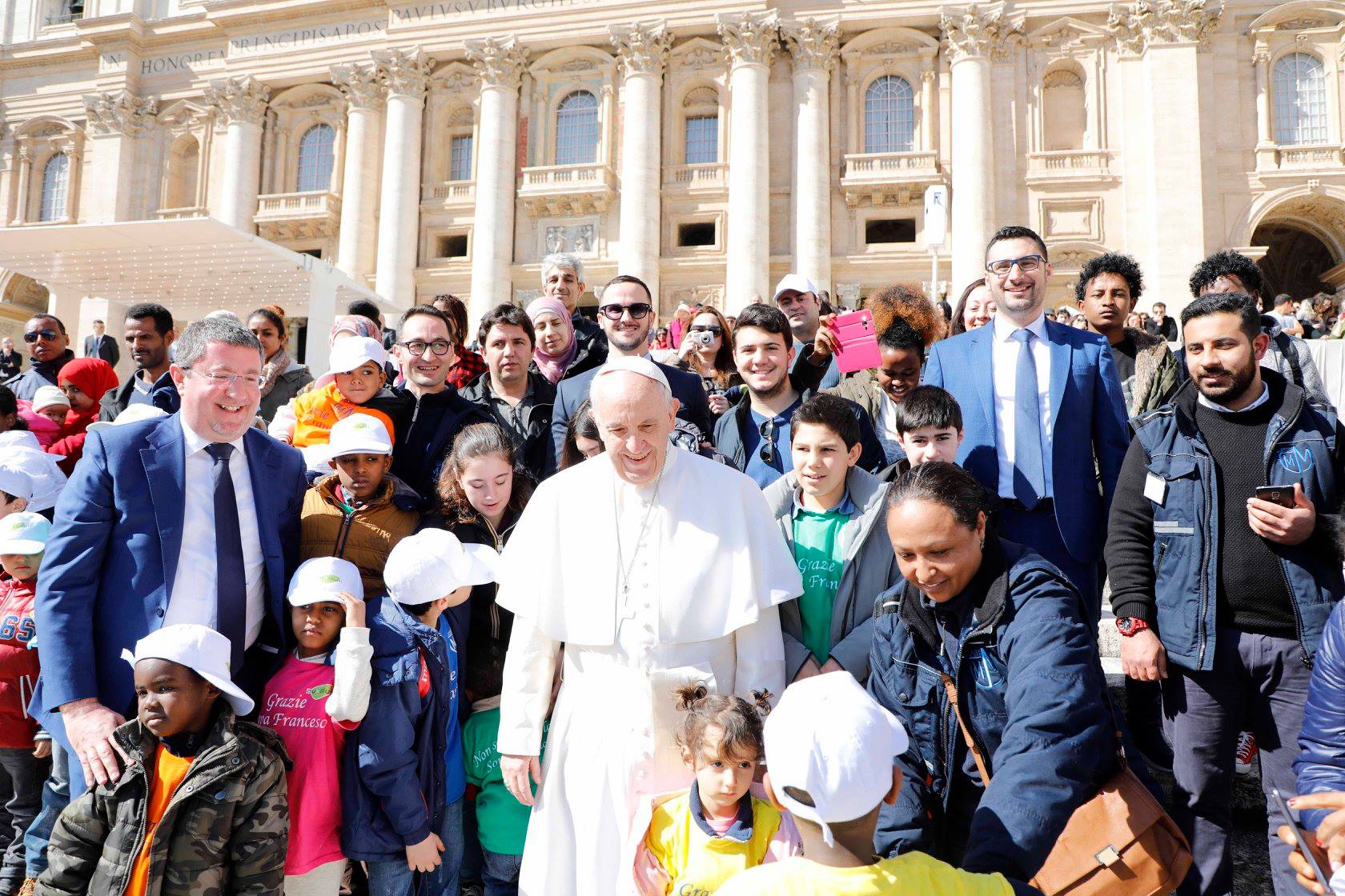 All'udienza generale del mercoledì, Papa Francesco ha fatto salire sulla Papamobile i bambini portati in salvo con il primo corridoio umanitario. Una volta atterrati a Roma sono stati accolti, insieme ai loro genitori, dalla cooperativa Auxilium a Mondo Migliore.