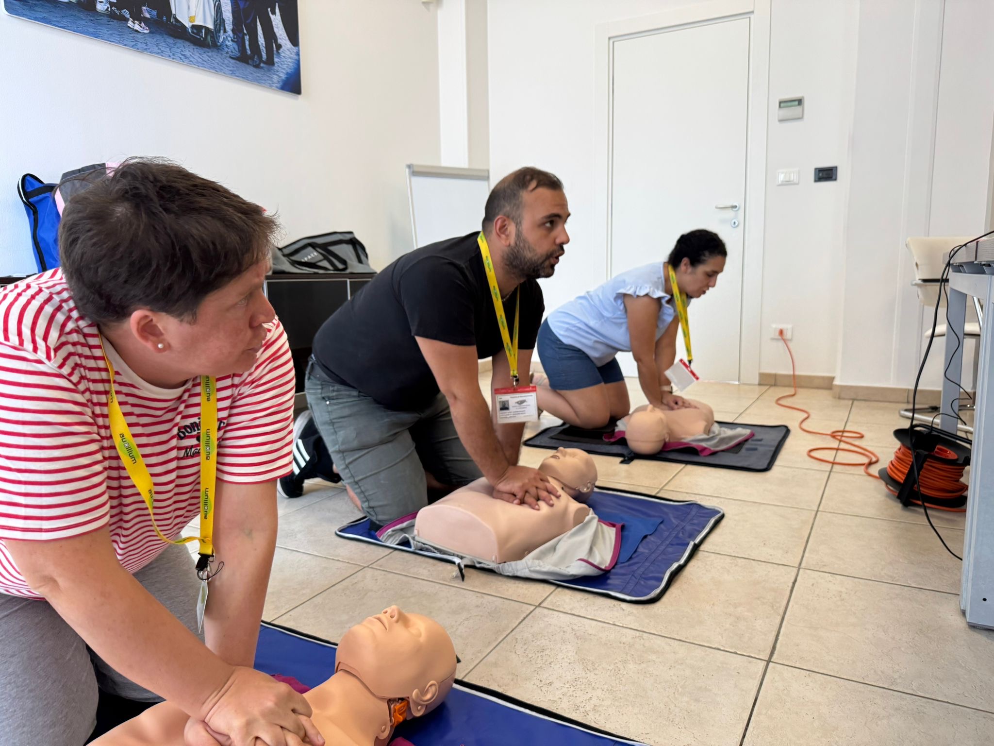 Terzo esempio viene dalla sede dell’ADI Bari: ogni anno tantissimi operatori delle Cure Domiciliari Auxilium seguono i corsi di aggiornamento sulle tecniche di primo soccorso e sulla manovra di Heimlich, la famosa procedura d’emergenza di disostruzione delle vie aeree.