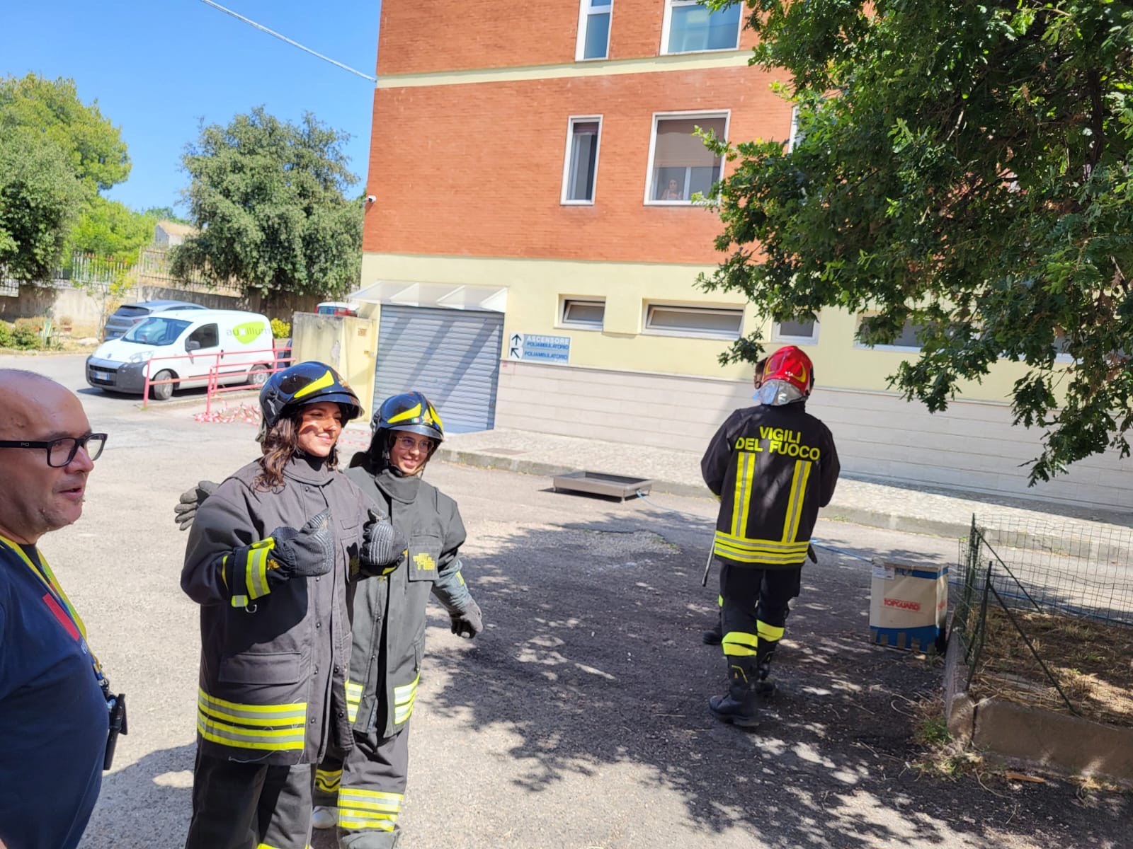 Il secondo esempio viene dall’Hospice Karol Wojtyla di Minervino Murge: qui lo staff sanitario viene formato con molta serietà dai Vigili del Fuoco ad affrontare le emergenze. I corsi di formazione antincendio per il personale sanitario non sono una novità, ma non capita tutti i giorni di vedere un’infermiera o un OSS in tenuta da pompiere, pronta ad entrare in azione. A Minervino Murge, dopo le lezioni teoriche, sono arrivate quelle pratiche, che si sono svolte davanti all’Hospice: tanto entusiasmo da parte dello staff, che svestito il camice e indossato il casco da pompiere ha imparato molte cose su come affrontare situazioni di pericolo con estintori ed altri strumenti.