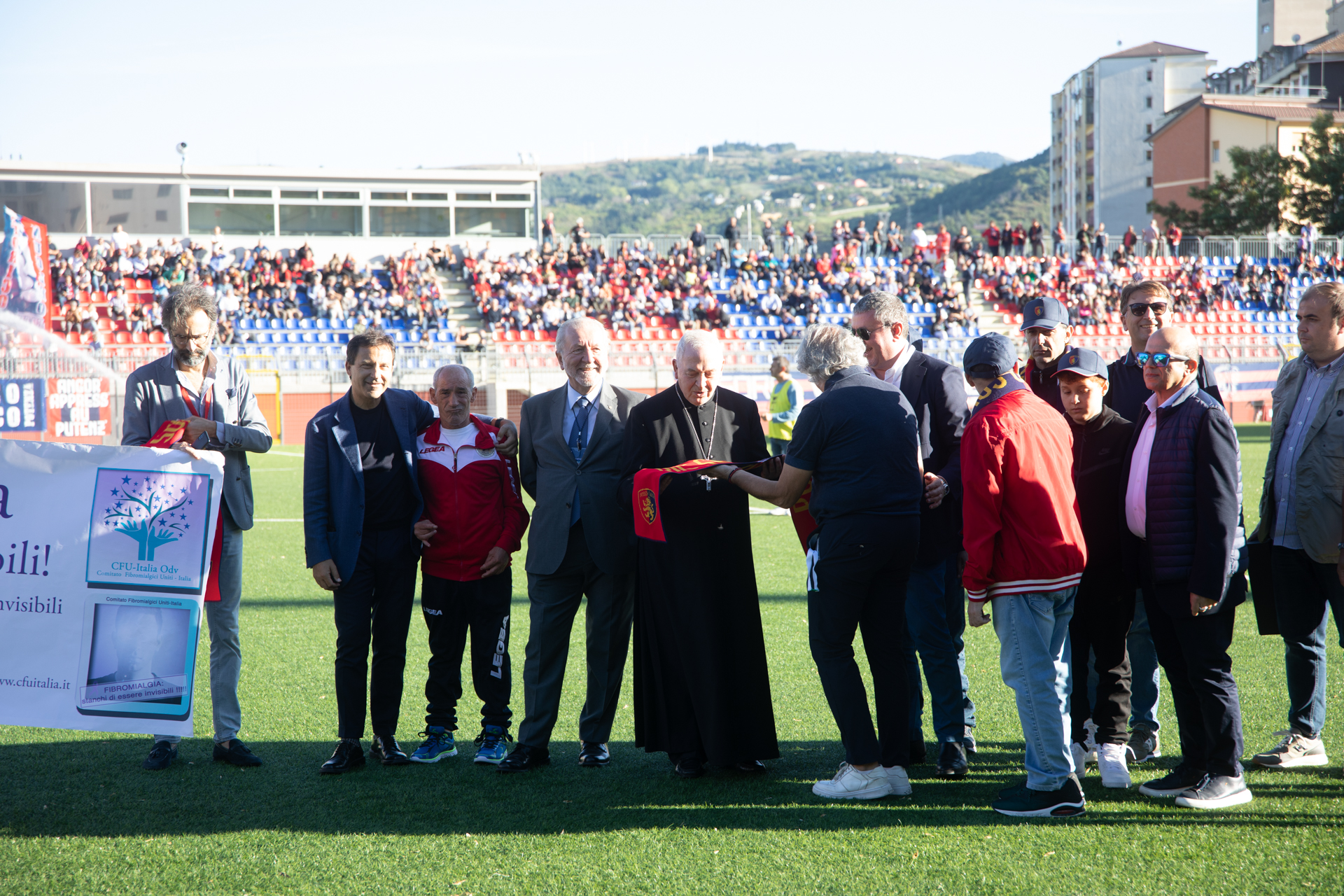 Alcuni di loro, insieme ad Angelo Colangelo, prima del fischio di inizio sono scesi sul campo dello Stadio Comunale Alfredo Viviani per regalare il cappellino Auxilium al vescovo di Potenza monsignor Salvatore Ligorio, al presidente della Lega Pro Francesco Ghirelli (che ha sempre sostenuto l’importanza dello sport come alleato dell’inclusione sociale) all’avvocato Giancarlo Viglione della FGCI, al presidente del Potenza Donato Macchia e ad Angelo Chiorazzo, vicepresidente del Potenza.
