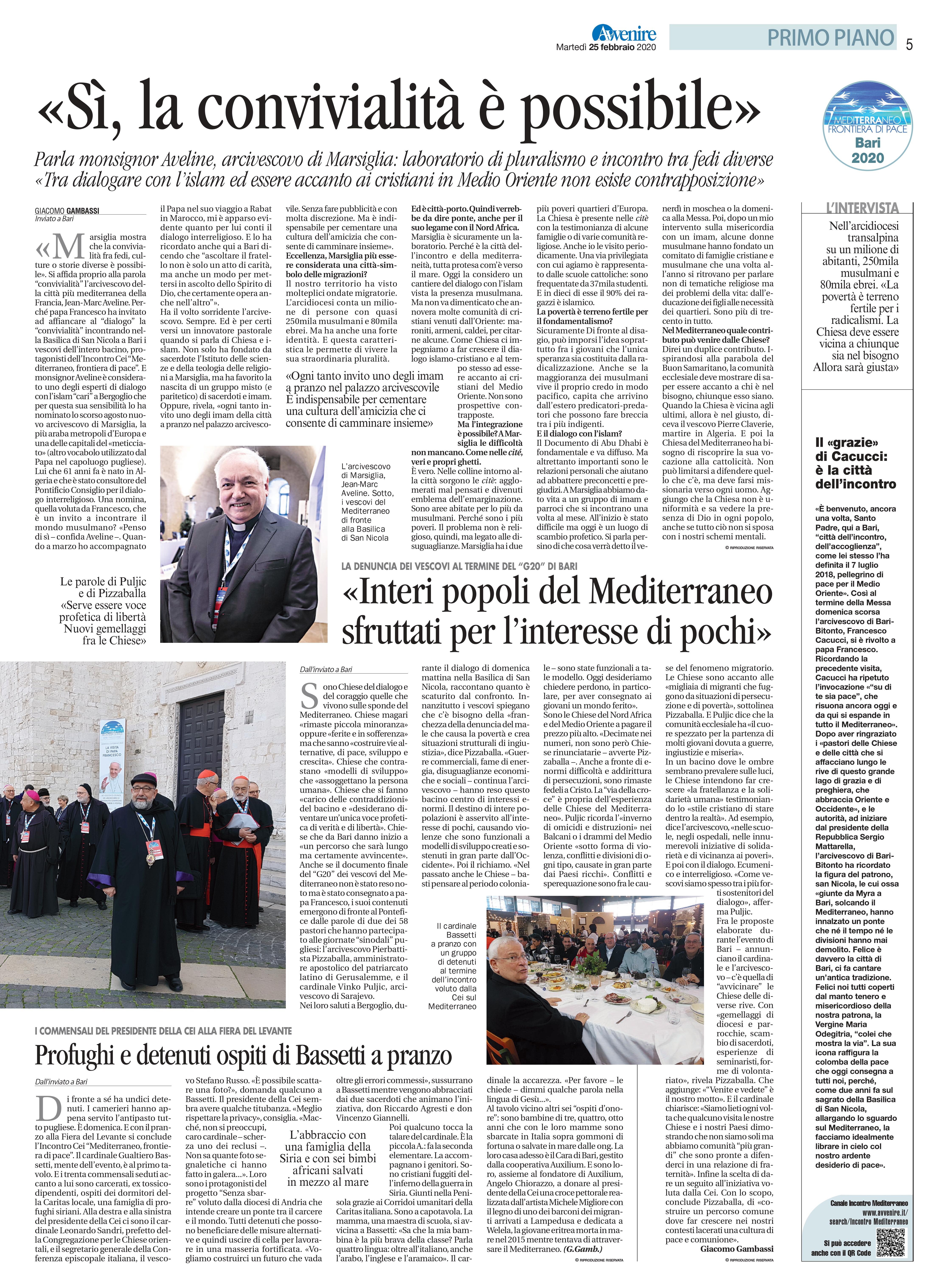 L'incontro “Mediterraneo frontiera di Pace” è stata un’occasione straordinaria per rendere più forte il dialogo fraterno tra tutte le sponde del Mare Nostrum che, come ha detto Papa Francesco, è il “luogo fisico e spirituale nel quale ha preso forma la nostra civiltà, quale risultato dell’incontro di popoli diversi”. Una profonda gratitudine va alla Conferenza Episcopale Italiana e al cardinale Gualtiero Bassetti per aver promosso questo importante meeting dei vescovi del Mediterraneo che è prezioso per rompere il muro dell’indifferenza e dei pregiudizi.