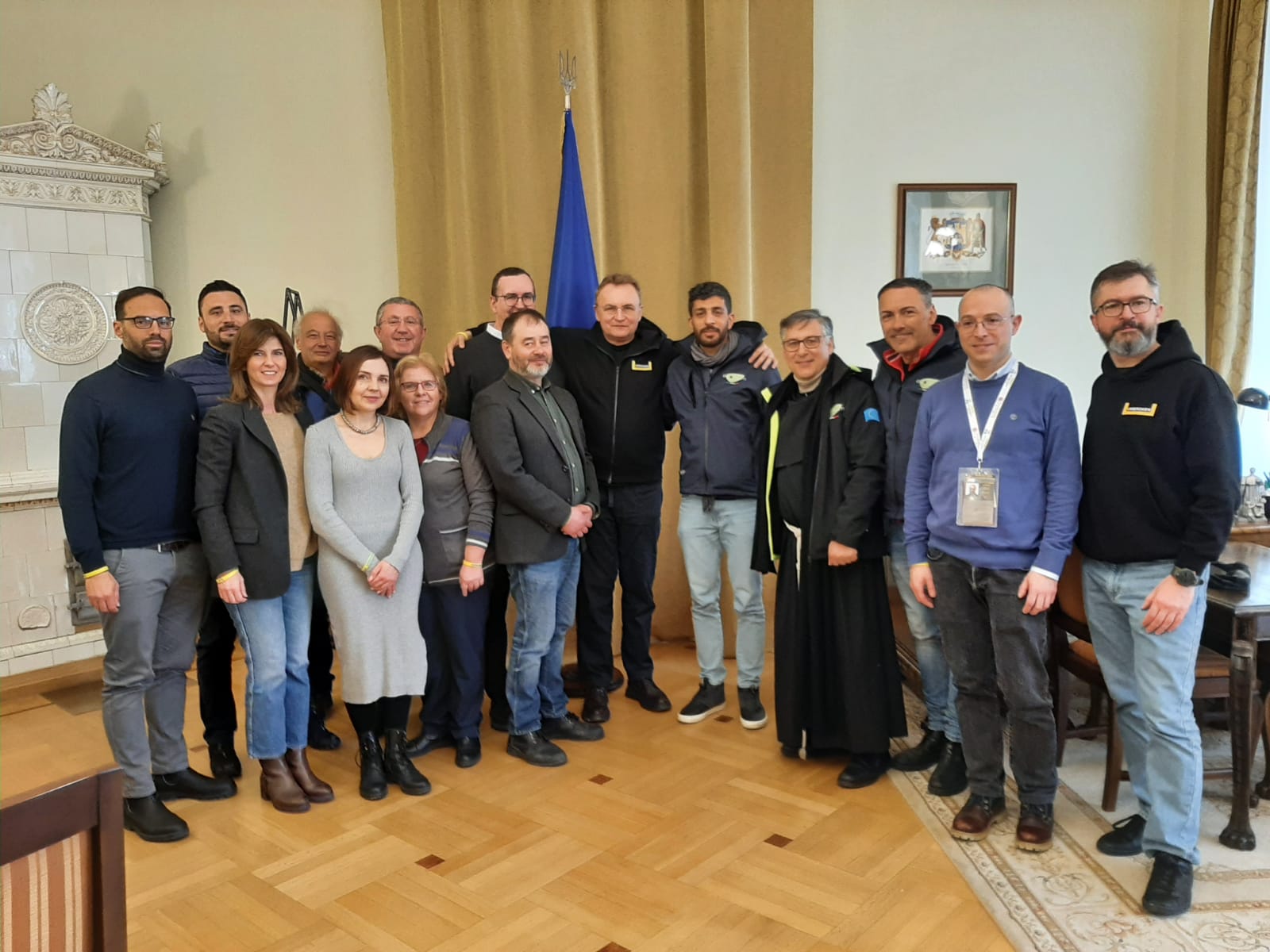 La Missione umanitaria aveva iniziato il suo programma di incontri, la sera del 27 marzo, con una bellissima visita al vescovo cattolico di Leopoli Mieczysław Mokrzycki, Vicepresidente della Conferenza episcopale dell'Ucraina. Un pastore per il suo popolo, che conosce bene l’Italia, essendo stato in passato uno dei segretari di Giovanni Paolo II e di Benedetto XVI.