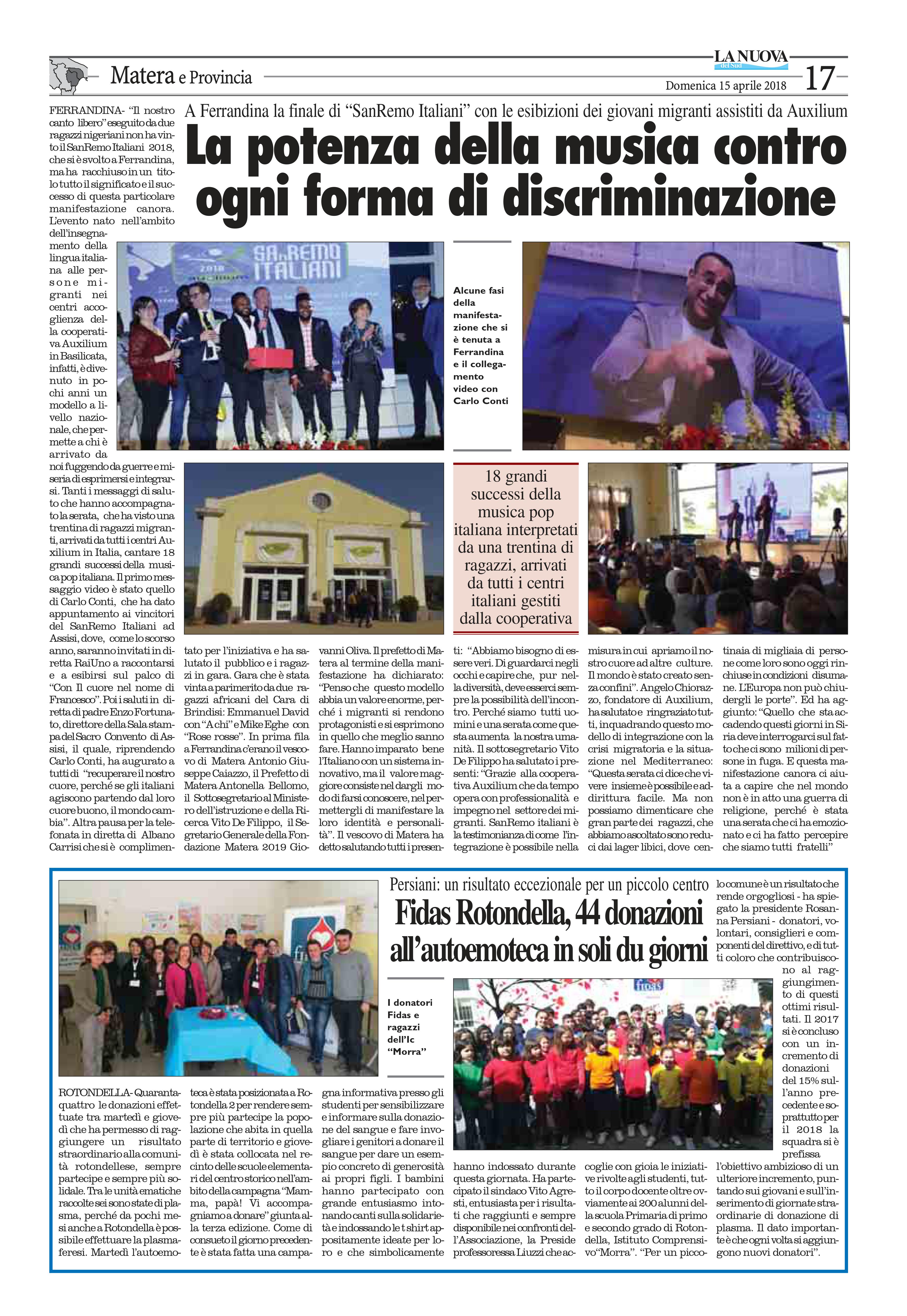 Venerdì 13 aprile si è tenuta la terza edizione di SAnREMO ITALIANI, la manifestazione canora nata nell'ambito dell’insegnamento della lingua italiana alle persone migranti nei centri accoglienza Auxilium in Basilicata ma, in pochi anni, è diventata un modello a livello nazionale.