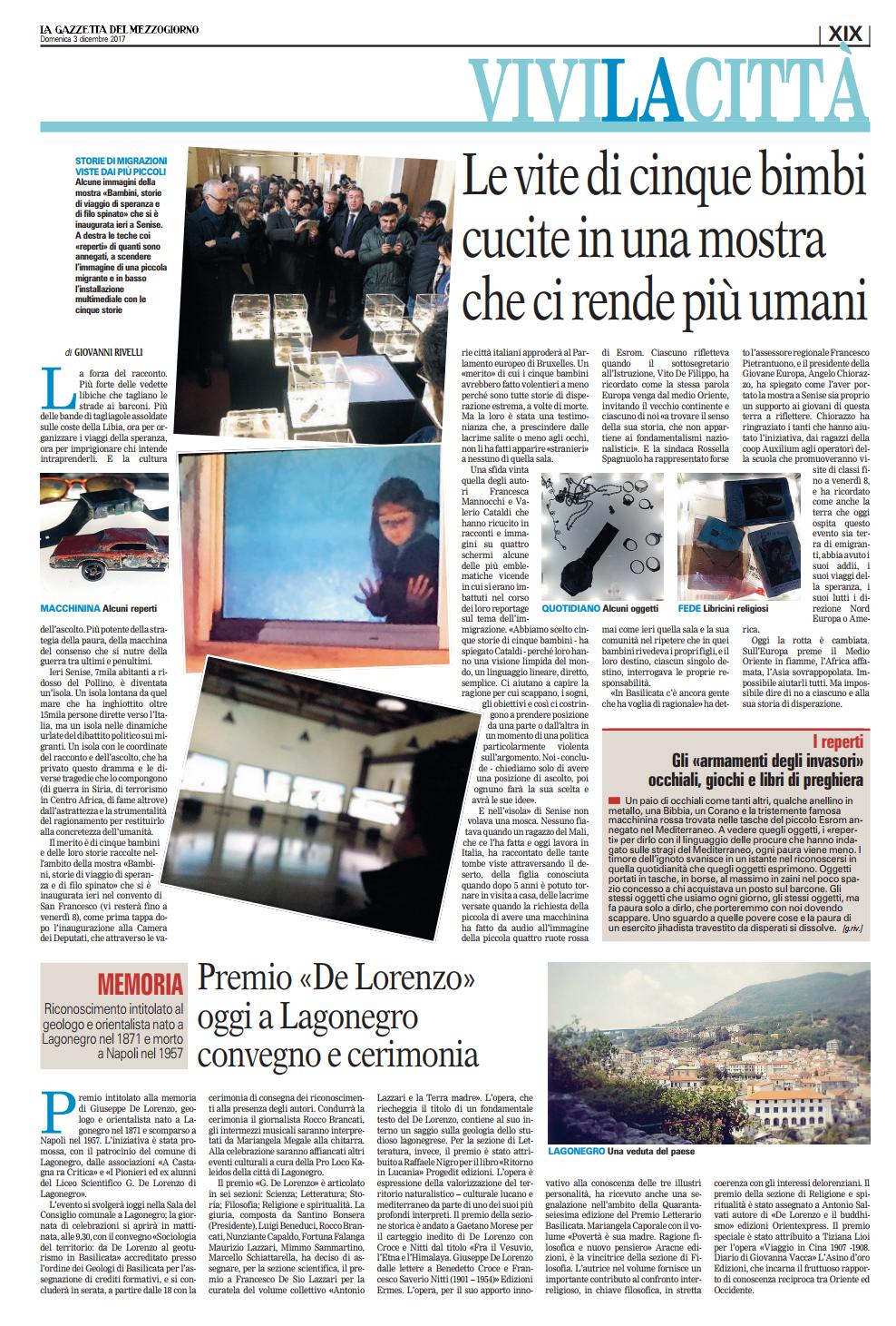 Gli articoli de La Gazzetta del Mezzogiorno e La Nuova del Sud in cui si parla della mostra «Bambini, storie di viaggio, di speranza e di filo spinato», inaugurata il 2 dicembre a Senise.